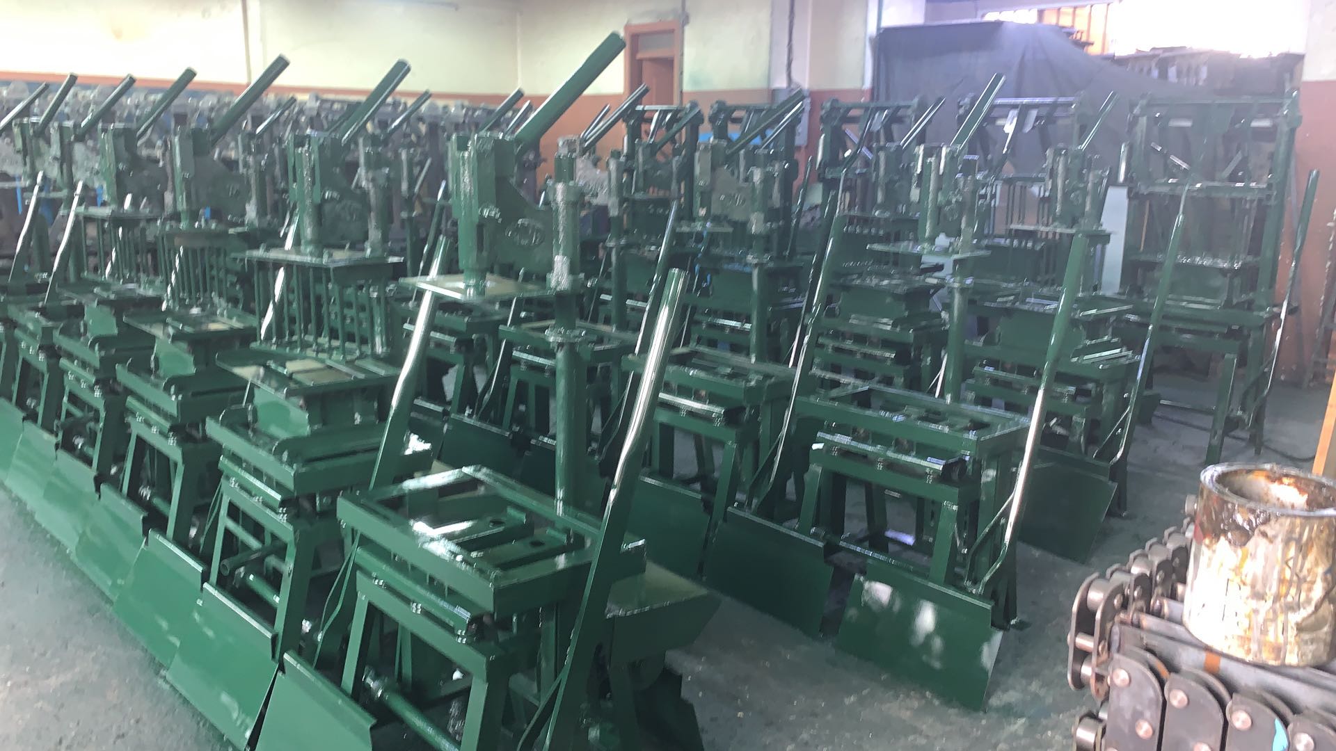 DOUAR, for stronger block and by humain force handle, is made for workman to use his power and tolerence to push down the cement to form the type of the mole design, removable with a wood pallet, 3hp or diesel connector unit let the vibrator dance the material into the mole.